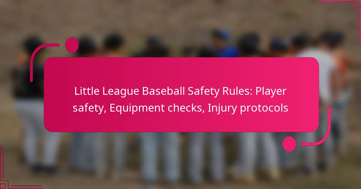 Ensuring player safety in Little League Baseball is paramount, with a focus on proper equipment usage and adherence to safe play guidelines. Regular equipment checks are essential to prevent injuries and maintain compliance with league standards. Additionally, established injury protocols provide effective responses and support for young athletes, promoting a safe environment for all participants.